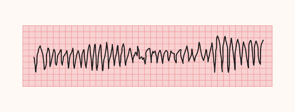 ECG: fibrilação ventricular.
